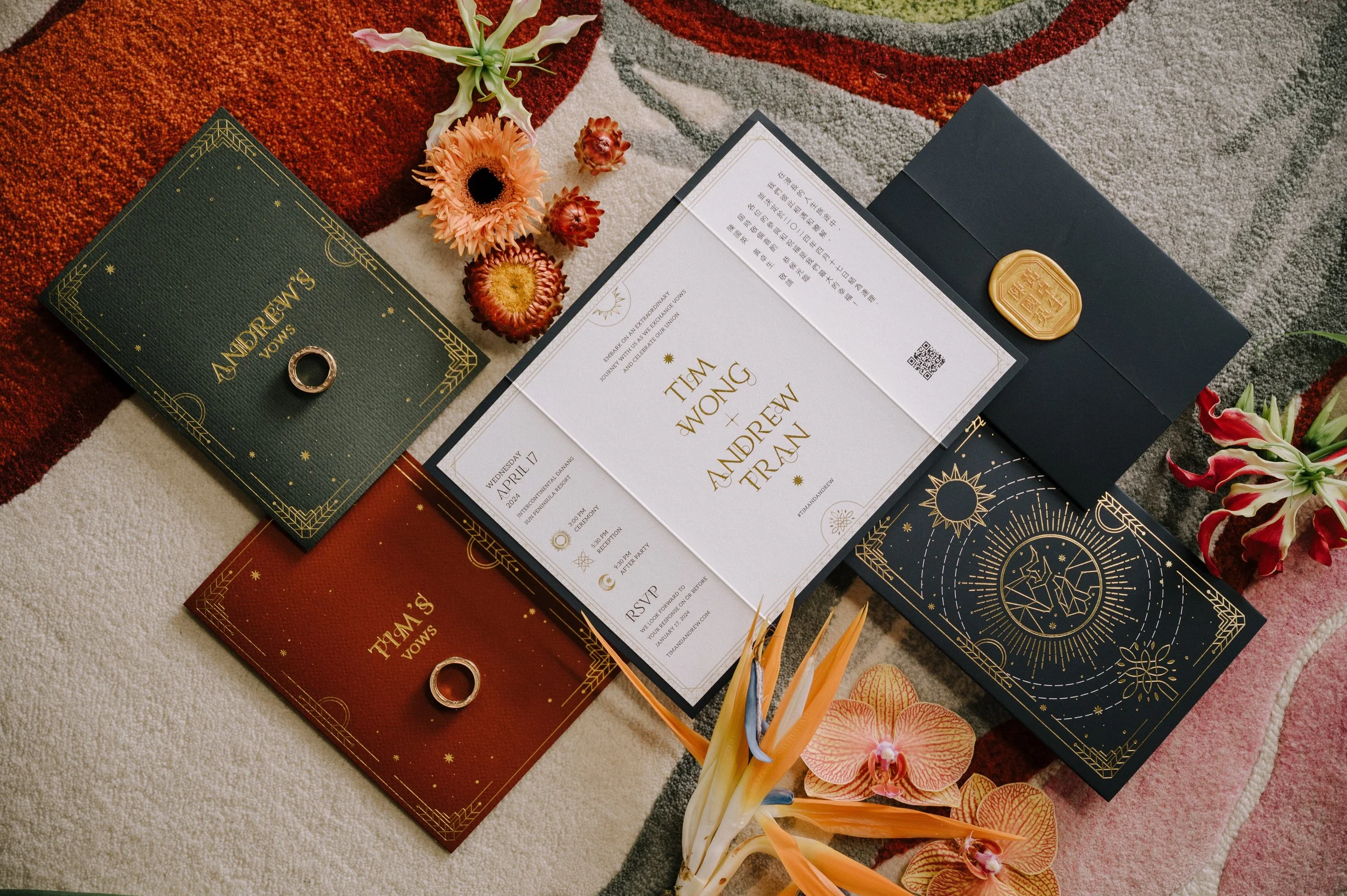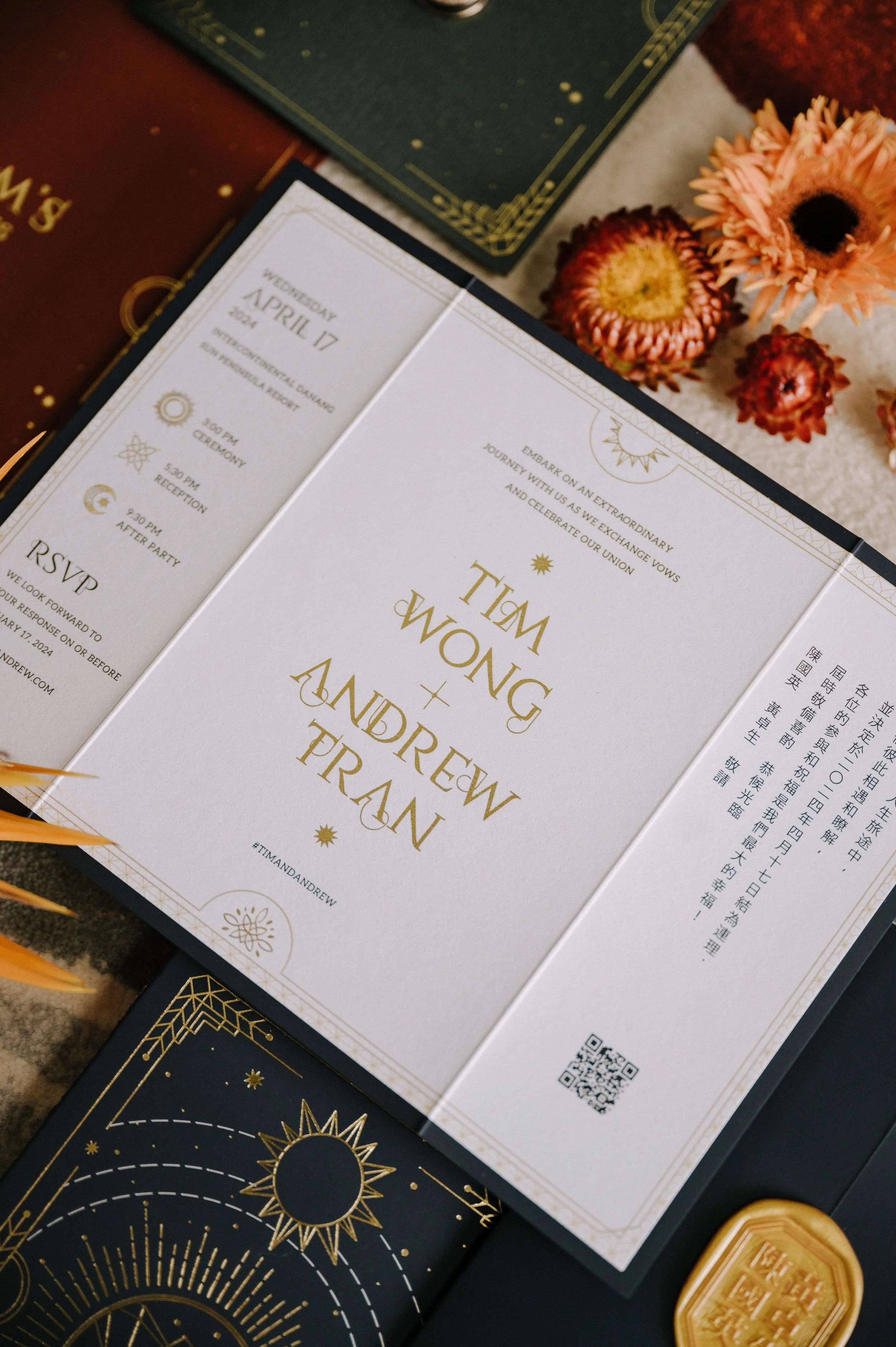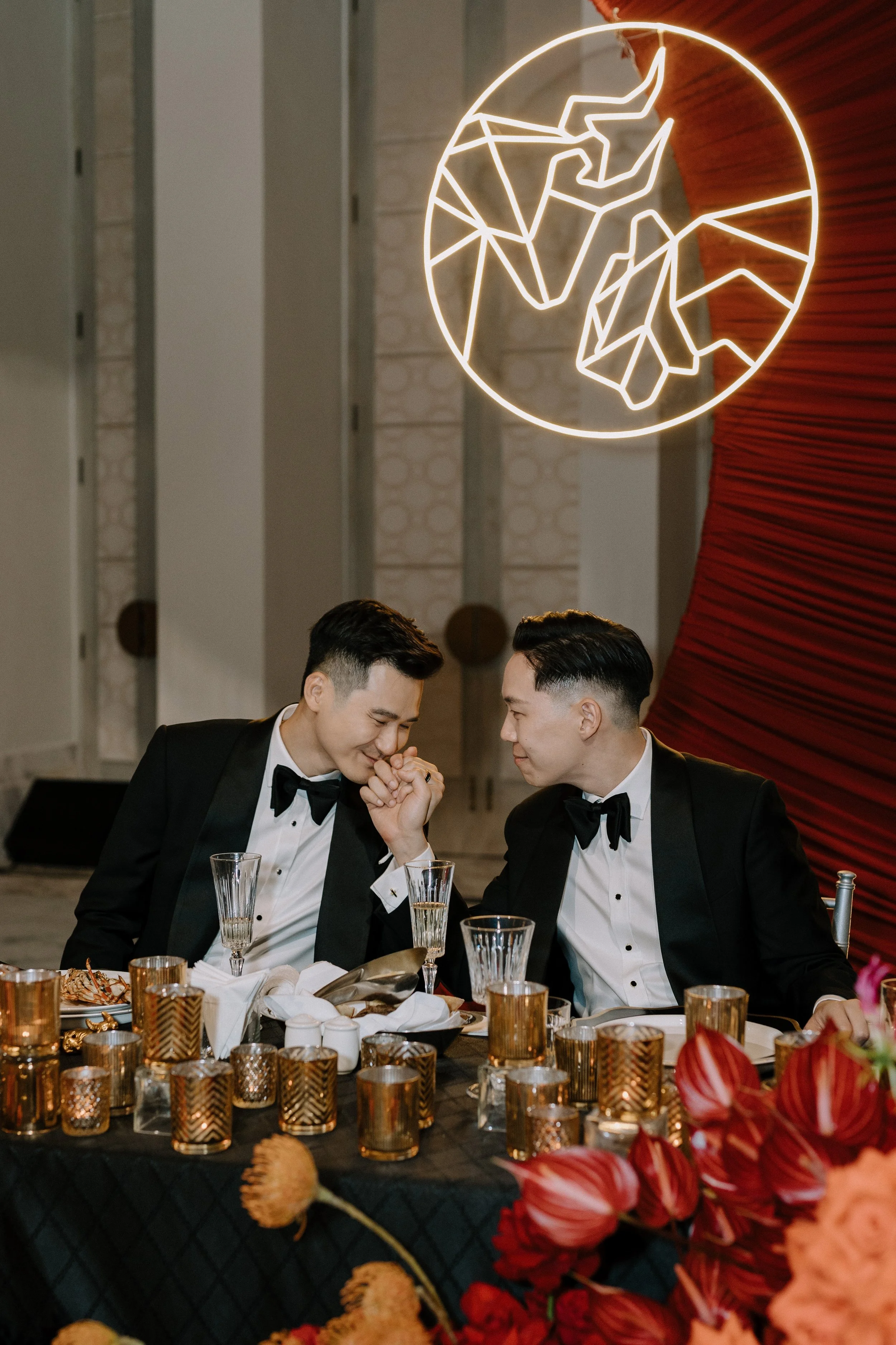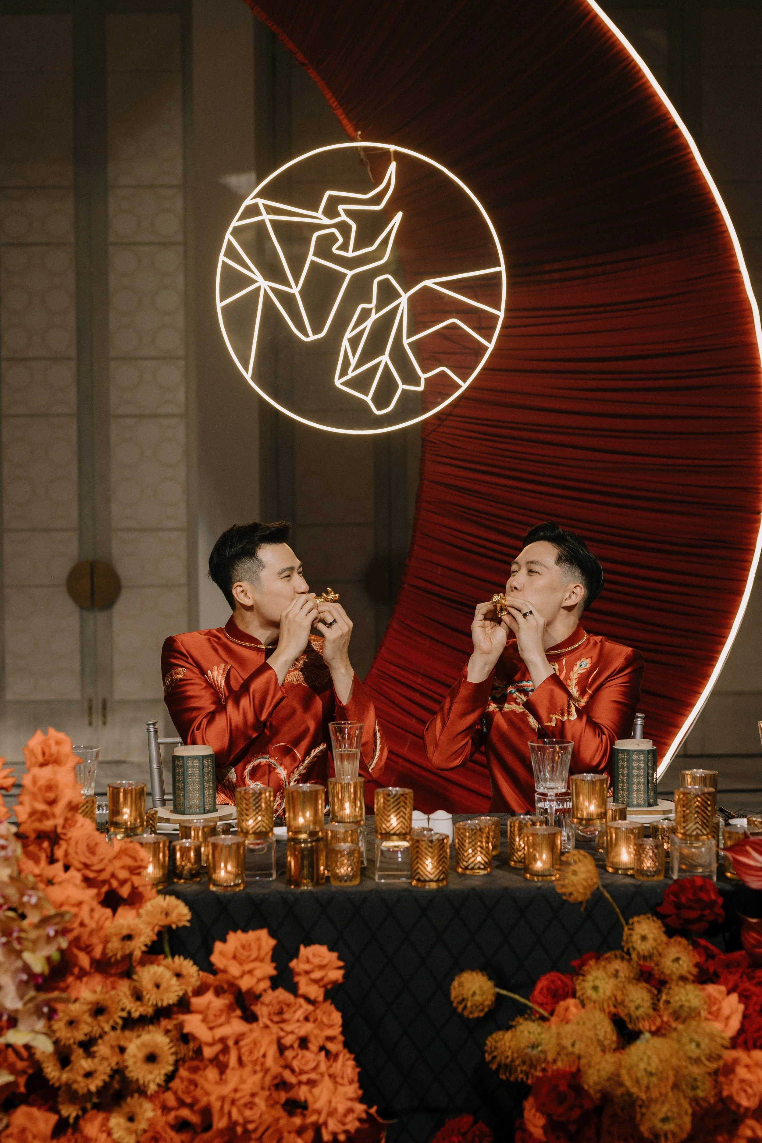 Tim & Andrew’s wedding, inspired by the Chinese Zodiac elements – the Wood & the Fire- is a testament to their enduring bond throughout their journey. Just like wood nurtures fire, Tim & Andrew’s love ignites passion, creativity, and innovation. As we witness Tim & Andrew’s journey unfold, we realize: “As time passes, their hearts mature, and their love transforms into glowing embers, deep and unyielding.”